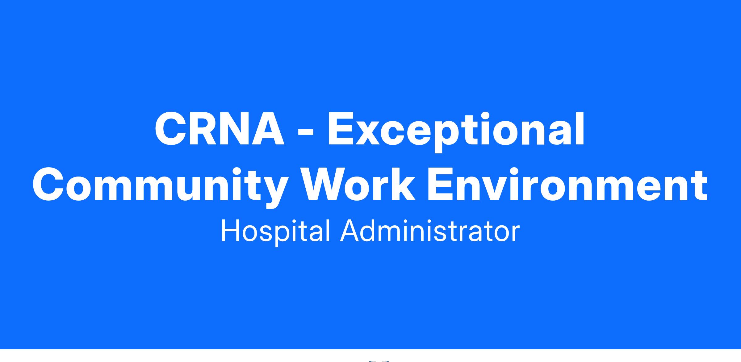 - All CRNA team, full CRNA autonomy and close knit community of coworkers
