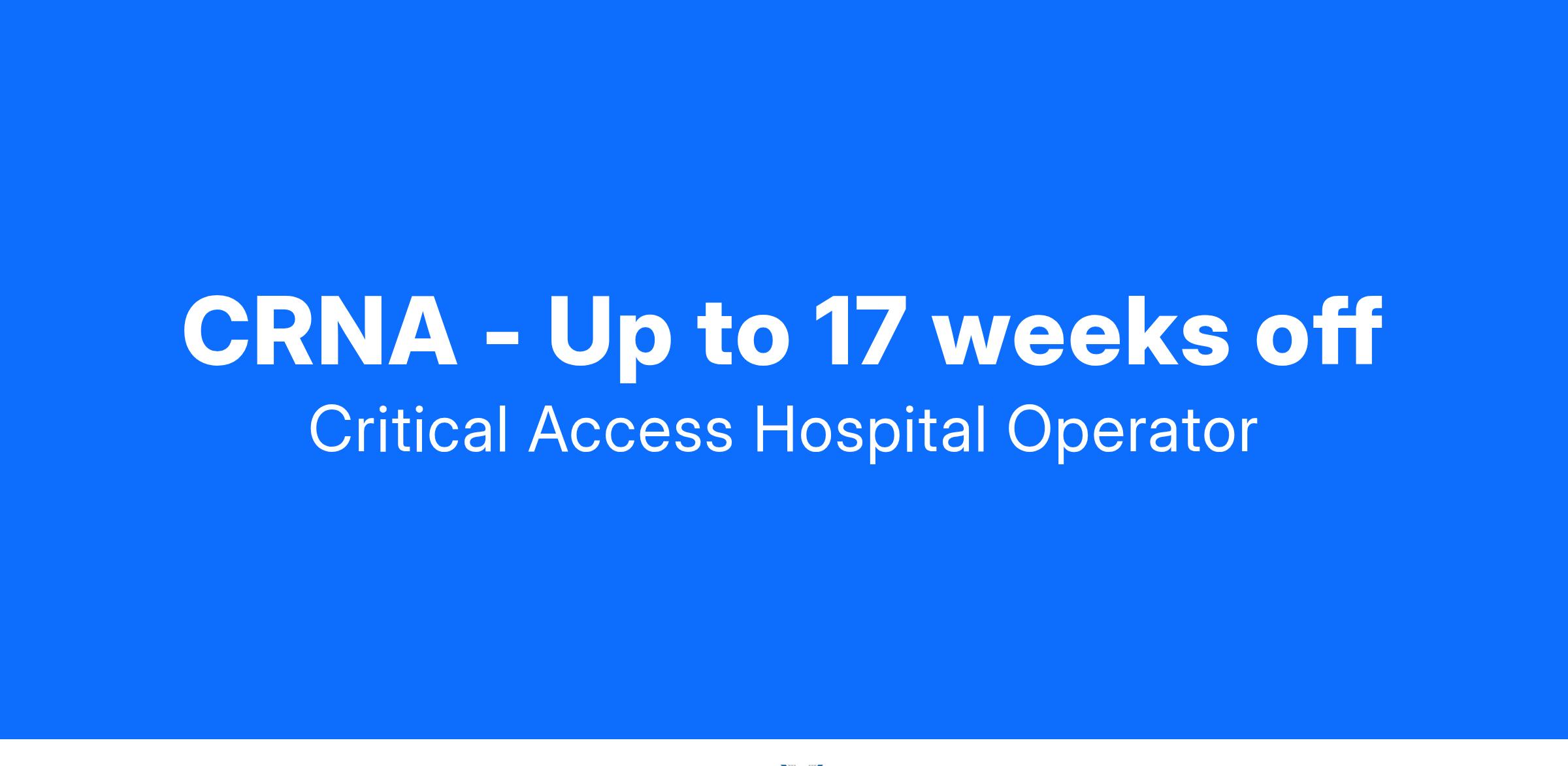 Join CRNA teams in Berlin or Shawano, WI at critical access hospitals. Full autonomy