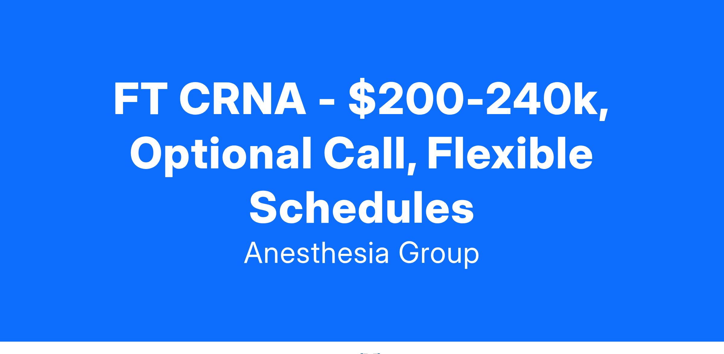 - MD + CRNA team - location based 30 minutes from Charlotte, NCE