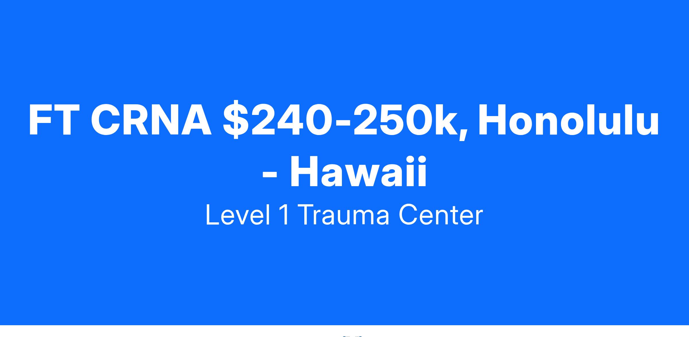 Seeking full-time W-2 CRNA to join the largest anesthesia practice in Hawaii at a level 1 trauma center in Honolulu. Enjoy a laid-back pacific island lifestyle in the gorgeous island chain of Hawaii. New graduates and experienced CRNAs welcome to apply!
