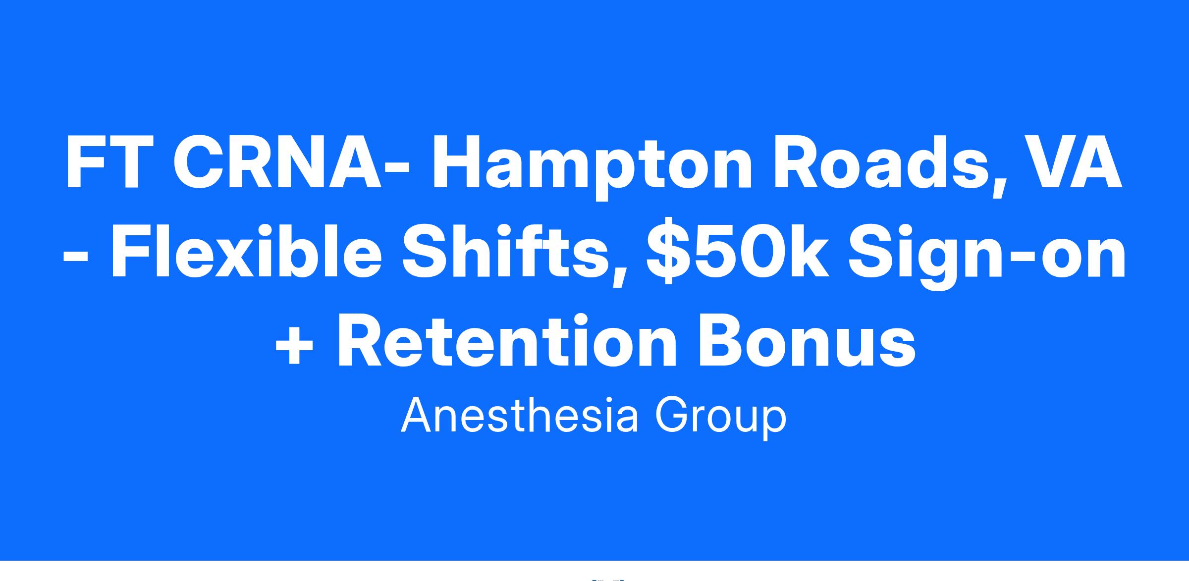 - Minimal call & holidays - significant night CRNA and call CRNA staff employed to manage night duties